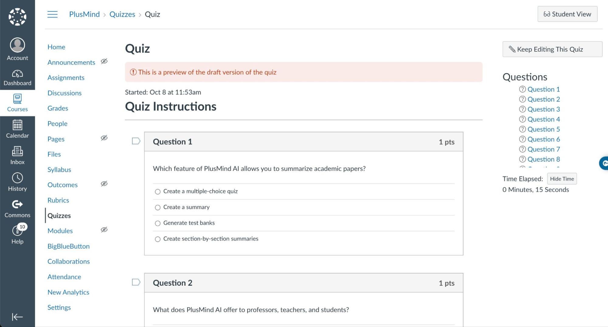 PlusMind AI propose une extension Chrome pour transférer des quiz vers Canvas LMS.